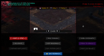 - Hunt for Blood: Click on [ > HUNT < ] to spend Stamina and enter the combat map. Defeat enemies to earn Pure Blood (the main currency).